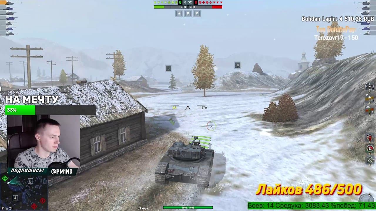 Поддержать стримера рублем - https://www.donationalerts.com/r/pm1nd https://donatepay.ru/don/pm1nd Мастер = 500р (танки которые нельзя заказывать на мастер - виндикатор, унылый песок) Бабаха - 2к, Йох - 5к, Виндикатор - 10к, ТВП/Крушитель - 20к ✔️Через донат можно не только задать вопрос, но еще и: - прокатить определенный танк - 152р - чек статы в конце стрима(=150р). Сразу после боя - 300р. - поставить музыку на стрим - 200р - взвод на пару каток (обычно 3, если есть очередь) - 200р - оценить реплей боя (предварительно прислать на почту pm.blitzreplay@gmail.com ) - 500р Для тех кто действительно хочет помочь: - удалить танки на неделю - 100 000р - приехать в ваш город (РФ) и удалить танки ВАМ (под ключ со всех устройств) - 150 000р Мой второй канал по Большим танкам, в будущем ТКМ и про тачки - https://www.youtube.com/channel/UCkX7Sy9t3DSYa1V6u441HbQ Вступить в семью интеллигентных танкистов или просто спонсорка (смайлы + выделение в чате + бонусы + ты помогаешь ютубу продвигать мой канал очень сильно) - https://www.youtube.com/channel/UCmKYhDzvo9DrX2em0AOSQJA/join Шпаргалка Танкиста - https://docs.google.com/presentation/d/1WW86z3bgtSgWerpsoruDF1618aN3CXuQBq3937oxB6E/edit#slide=id.p1 Топ Годных Премов - https://sun9-26.userapi.com/impg/Ey38bqAJ5qfkQU9Dq4GqiwsByzuUQB7dwyXFmw/32TsavUBMAk.jpg?size=600x600&quality=96&sign=544095e2907ddb23f16ed68afbe22ac2&type=album Канал с Нарезками - https://www.youtube.com/channel/UCSK2BaGA06o5qD6Nqpuh4hw Реплеи слать сюда - pm.blitzreplay@gmail.com По вопросам сотрудничества, пиар канала, реклама в сообществе - PM1ND@hmd.one ИНСТАГРАМ - https://www.instagram.com/pm1nd Группа ВК (вступаем) - https://vk.com/pm1nd Телеграм PM1ND - https://t.me/pm1nd Страница ВК (добавляемся в друзья) - https://vk.com/id10179989 Discord - https://discord.gg/vDNnXh6 ВСЕ ТОНКОСТИ КАРТЫ здесь - https://www.youtube.com/channel/UCD7aNsZhb79WpRd4RNh5X0A Играю с iPad Pro 11" 2018 64gb. Характеристики ПК есть в инстаграме. В игре бан чата, поэтому не могу ответить. :( Стримлю через OBS и X-Mirage. Виджет статы - https://widget.pythonanywhere.com/ #стрим #wotblitz #вотблиц #wot #WorldOfTanksBlitz #WorldOfTanks #PM1ND