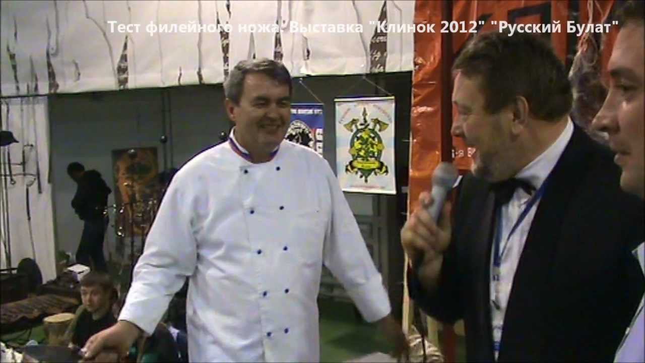 Поварской конкурс во время проведения выставки "Клинок - осень 2012" в Сокольниках. В конкурсе тестируется филейный нож из дамасской тали компании "Русский булат". Тесты проводит известный московский шеф-повар Юрий Шутаев. Заказ филейных ножей на сайте http://rusdamask.ru/?page_id=12&category=11 ====================================== -------------------------------------- Загрузить мобильное приложение с нашим каталогом ножей для iPhone, iPad и Android: http://rusdamask.ru/informaciya/mobilnoe-prilozhenie/ -------------------------------------- ====================================== Интернет-магазин ножей "Русский булат" -------------------------------------- 1) Охотничьи ножи http://rusdamask.ru/catalog/oxotnichi-nozhi/ 2) Ножи из тигельного булата http://rusdamask.ru/catalog/bulatnye-nozhi/ 3) Рыбацкие ножи http://rusdamask.ru/catalog/rybackie-nozhi/ 4) Ножи из стали 9ХС http://rusdamask.ru/catalog/nozhi-ruchnoj-kovki-iz-stali-9xs/ 5) Ножи из порошковой стали ELMAX http://rusdamask.ru/catalog/nozhi-iz-poroshkovoj-stali-elmax/ 6) Исторические копии ножей http://rusdamask.ru/catalog/istoricheskie-kopii-legendarnyx-nozhej/ 7) Туристические ножи http://rusdamask.ru/catalog/turisticheskie-nozhi/ 8) Подарочные ножи http://rusdamask.ru/catalog/podarochnye-nozhi/ 9) Тяпки http://rusdamask.ru/catalog/tyapki/ 10) Топоры ручной ковки http://rusdamask.ru/catalog/topory/ --------------------------------------------------------------------------- =========================================================================== Смотреть отзывы про ножи Русский булат http://rusdamask.ru/informaciya/otzyvy/ =========================================================================== --------------------------------------------------------------------------- Русские ножи от компании Русский булат - http://rusdamask.ru