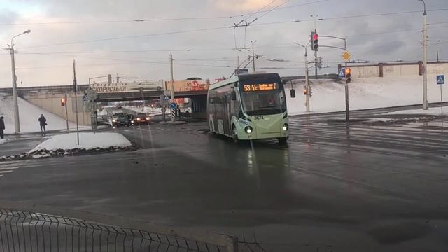 выезжающие троллейбус по маршруту №1 и троллейбус по маршруту №53 с ДС зелёный луг 7