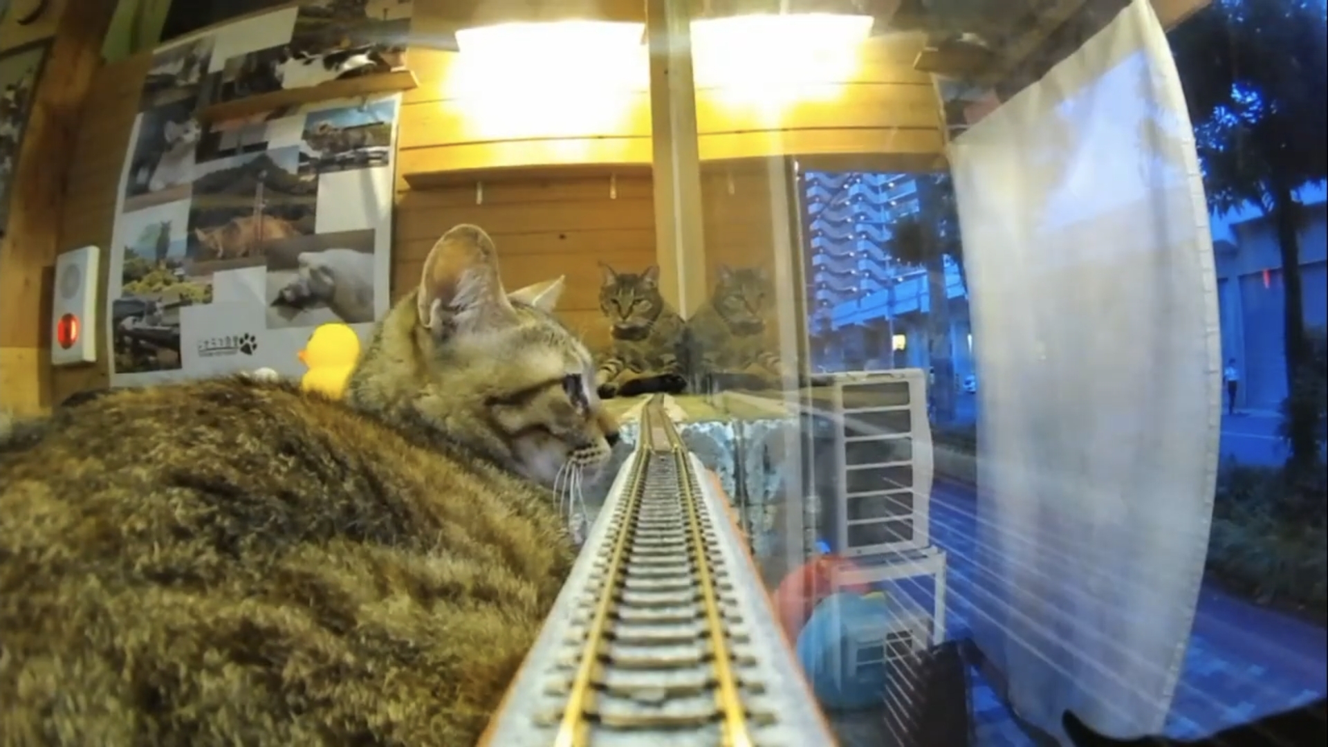 Кошки на железной дороге с поездами модели для детей