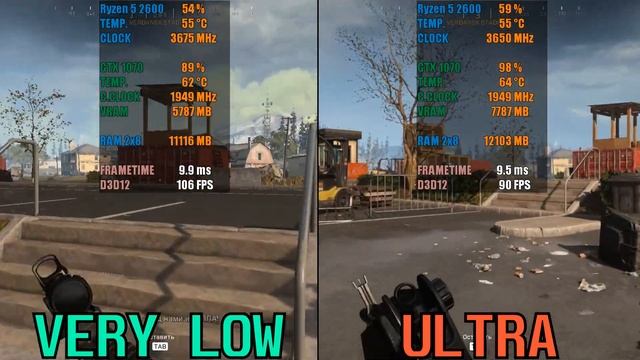 Теперь у канала есть свой Инстаграм! https://www.instagram.com/codered_pc/?hl=uk PC specifications: Nvidia Driver - 457.30 - Ryzen 5 2600 (3.4 Ghz - 3.9 Ghz) STOCK. - Nvidia GTX 1070 8GB ( Gigabyte Aorus). - Motherboard ASUS TUF B450-PRO GAMING. - SSD WD Green 240GB M.2 - HDD Seagate 2Tb (ST2000DM001) (7200 RMP,64Mb,Sata III). - 16 GB of RAM CORSAIR VENGEANCE RGB PRO DDR4 3200 Mhz (2x8 dual channel) - Power Supply be quiet! System Power 9 600W 80+ Bronze. Graphics settings - Very Low - Ultra. The resolution is 1920x1080. Without video recording + 2-4 FPS