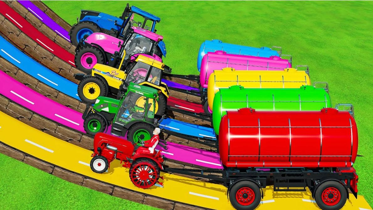 МУЛЬТИКИ ПРО РАЗНОЦВЕТНЫЕ БОЛЬШИЕ И МАЛЕНЬКИЕ ТРАКТОРА И МАШИНКИ ДЛЯ ДЕТЕЙ 🚜 КАТАЕМСЯ И ПРЫГАЕМ 🚜