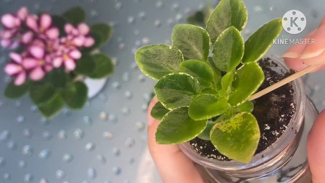 Отделяем пасынки на мини-фиалке.