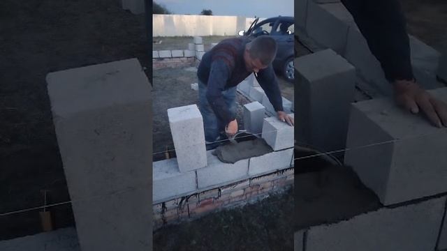 Начало положено, кладём 2й ряд бани