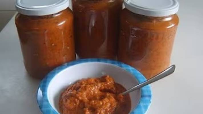 3 кг помидор (очистить от кожуры и уварить в течении часа без крышки) 2 кг баклажан запечь 30 мин при температуре 200 градусов 1,5 кг болгарского перца+ 1-2шт горького перца 1кг лука обжарить 1кг моркови обжарить 500 мл раст.масла без запаха всё соеденить , кипятить под крышкой 30 минут пучок укропа 200 гр чеснока 1ч.л чёрного молотого перца 2 ст.л соли 6 ст.л сахара проварить 2-5 минут, пробить блендером 125мл 6% уксуса (9%-85мл, 25%-30мл, 70%-10мл) проварить 5-7 минут, разложить по банкам и закатать.