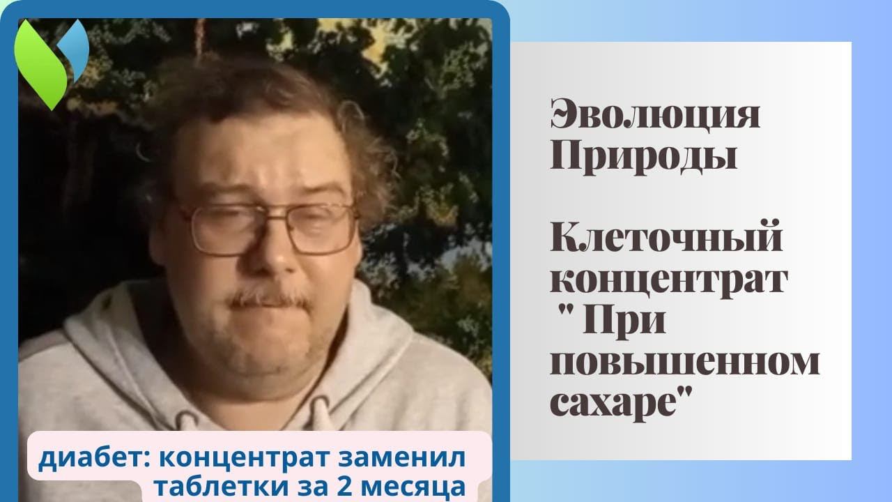 Здравствуйте! Хотел бы оставить отзыв о "ПРИ ПОВЫШЕННОМ САХАРЕ" клеточном концентрате. Данный клеточный концентрат я принимал 3 месяца. Первые 3 недели я принимал вместе с таблетками, начинался сахар с 12 натощак. Через 2-3 недели сахар начал хорошо уменьшаться, я дошел до 8. После я поверил в данный концентрат и через какое-то время сахар начал стабилизироваться и дошел практически до нормы, у меня было 6,8 натощак. У меня больше 10 лет диабет 2 типа и ежегодно сахар повышался на 1 единицу. После 2 месяцев я решил попробовать следующий шаг: заменит ли данный концентрат таблетки, их я принимал разные. Я постепенно начал уменьшать сиофор и выяснилось, что 1/2 чайной ложки утром и вечером полностью заменили мне данное лекарство. Через еще пол месяца я попытался отменить все таблетки и использовать только данный концентрат и это сработало. Эффект был одинаковый. Практически я заменил химию на концентраты. Итого, за 3 месяца у меня натощак нормализовался сахар до нормы (5,8). Концентрат употреблял постоянно, без перерыва. Сахар с утра 5,4-6,8. Днем не поднимался больше 8. В принципе концентрат очень хорошо занимает таблетки. Фактически я снизил употребление амарил, отказался от жардиса и сиофора. Спасибо компании Эволюция природы. Заказать продукцию НПО ЭВОЛЮЦИЯ ПРИРОДЫ вы можете в нашем интернет магазине https://эволюция-природы.рф/