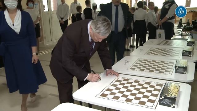 Анатолий Карпов подарил школьникам Тюменского района шахматный инвентарь