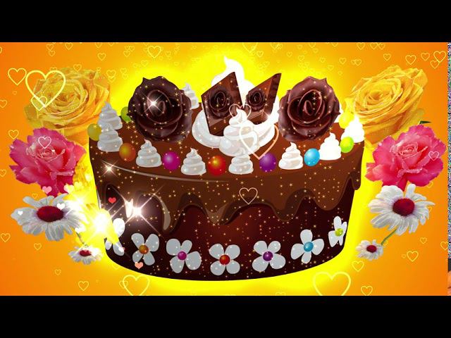 Футаж: С ДНЁМ РОЖДЕНИЯ. ТОРТ с цветами на коралловом фоне с эффектом сердечек