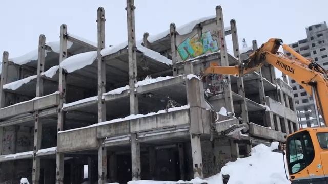 Разбор здания экскаватором