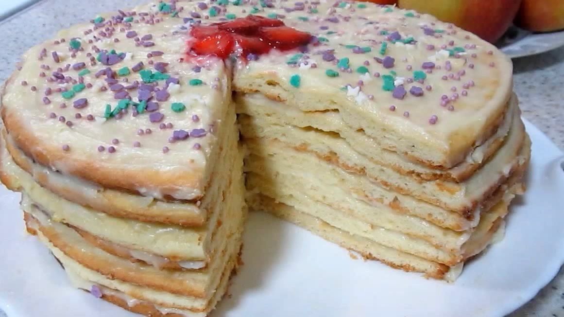 Конечно, коржи можно выпекать на сковороде. Но в духовке они получаются нежнее, три минуты и готово. Торт действительно вкусный. Крем любой! Летом чаще ягодный. Ягодку на блендер, прогреть с агар-агаром, например, и прекрасный ягодно-творожный тортик получится. Сегодня классика, заварной! Рецепт: Творог - 300 гр Яйца - 3 шт Сахар - 150 гр Сода - 0,5 ч.л ( погасить уксусом) Мука - 350 гр+- Масло сливочное - 30 гр Крем: Сахар - 150 гр Яйца - 2 шт Мука - 2 ст.л с горкой Молоко - 2 стакана Ваниль Масло сливочное - 180 гр