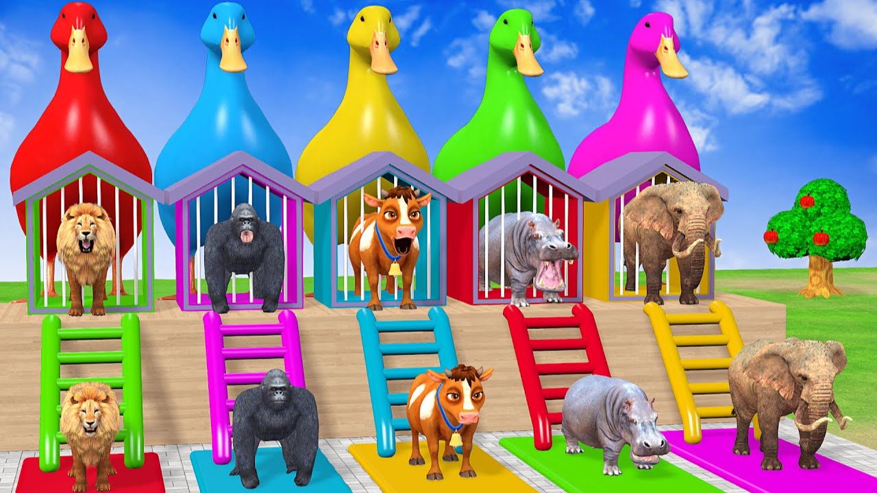 Веселые игры с слоном, гориллой, бегемотом, тигром - 3D игра с животными - Забавные 3D животные
