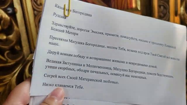 Я приложила ваши письма к чудотворной иконе Богородицы Казанской в Казанском соборе Горни