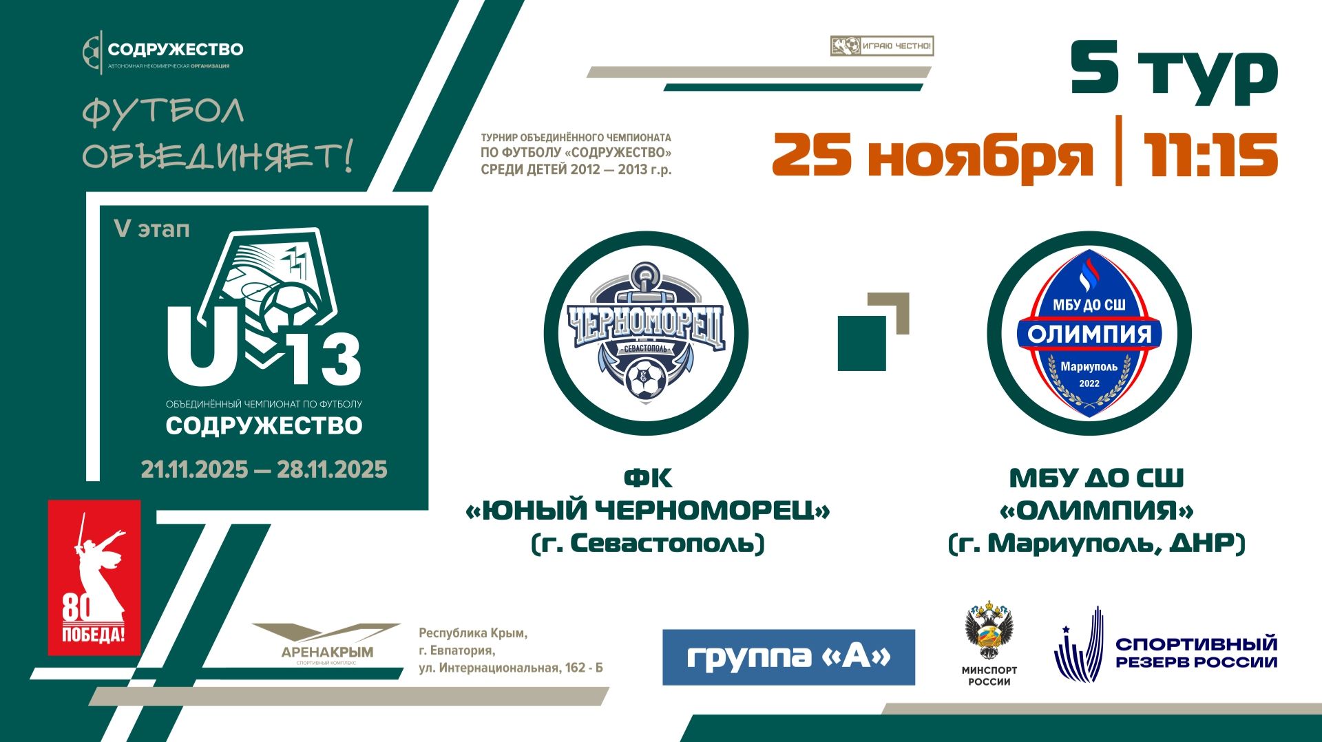 5 ТУР [Группа А] | ФК «Юный Черноморец» (Севастополь) - МБУ ДО СШ "Олимпия" (Мариуполь) | 25.11.25