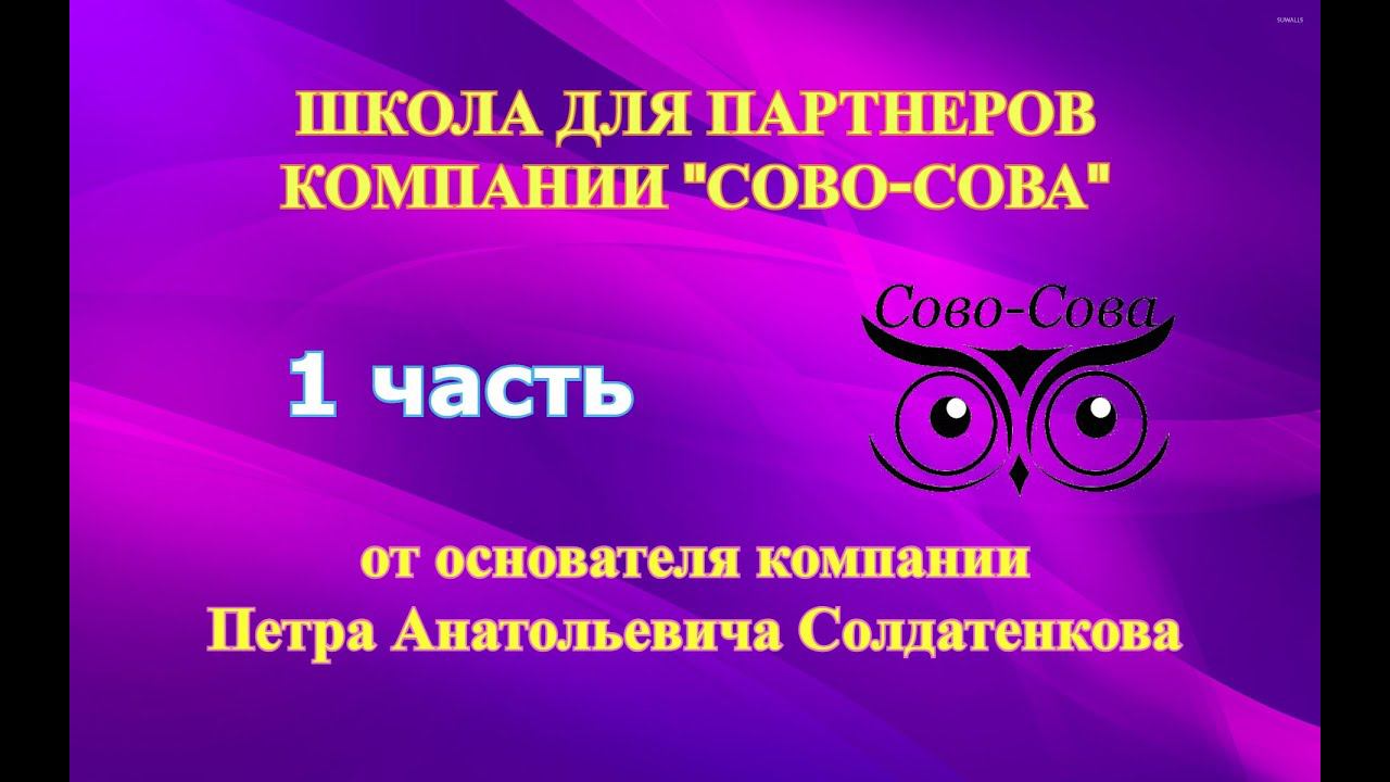 ШКОЛА ДЛЯ ПАРТНЕРОВ ОТ ОСНОВАТЕЛЯ КОМПАНИИ "СОВО-СОВА" - Петра Анатольевича Солдатенкова | 1 часть