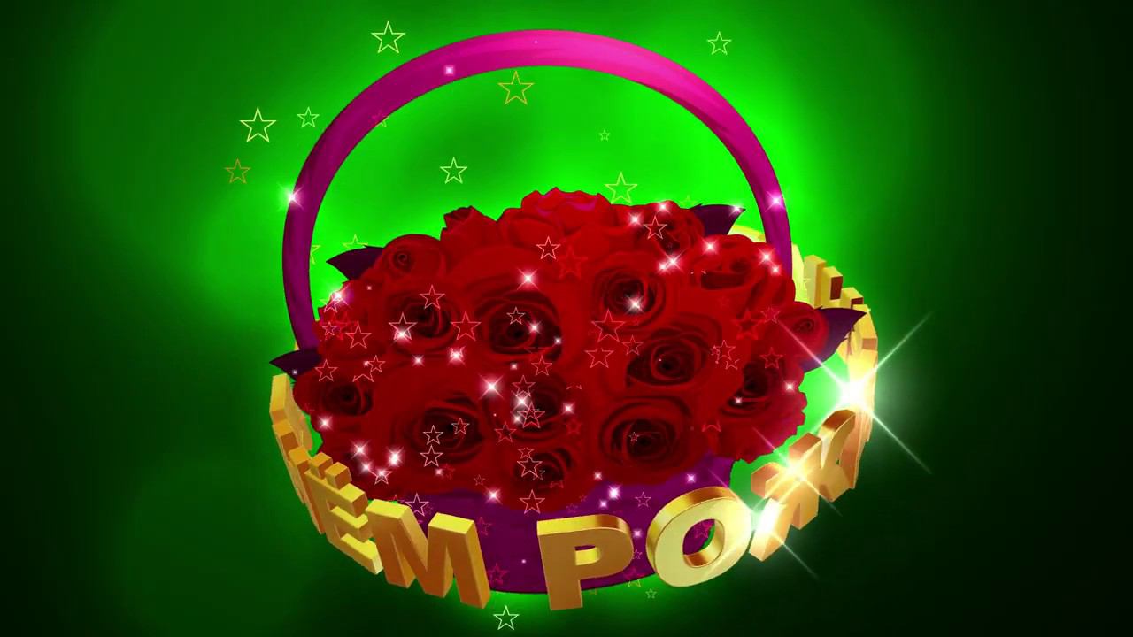 Шикарная корзинка с красными розами на ДЕНЬ РОЖДЕНИЯ с эффектом контура звёзд на тёмно зелёном фоне