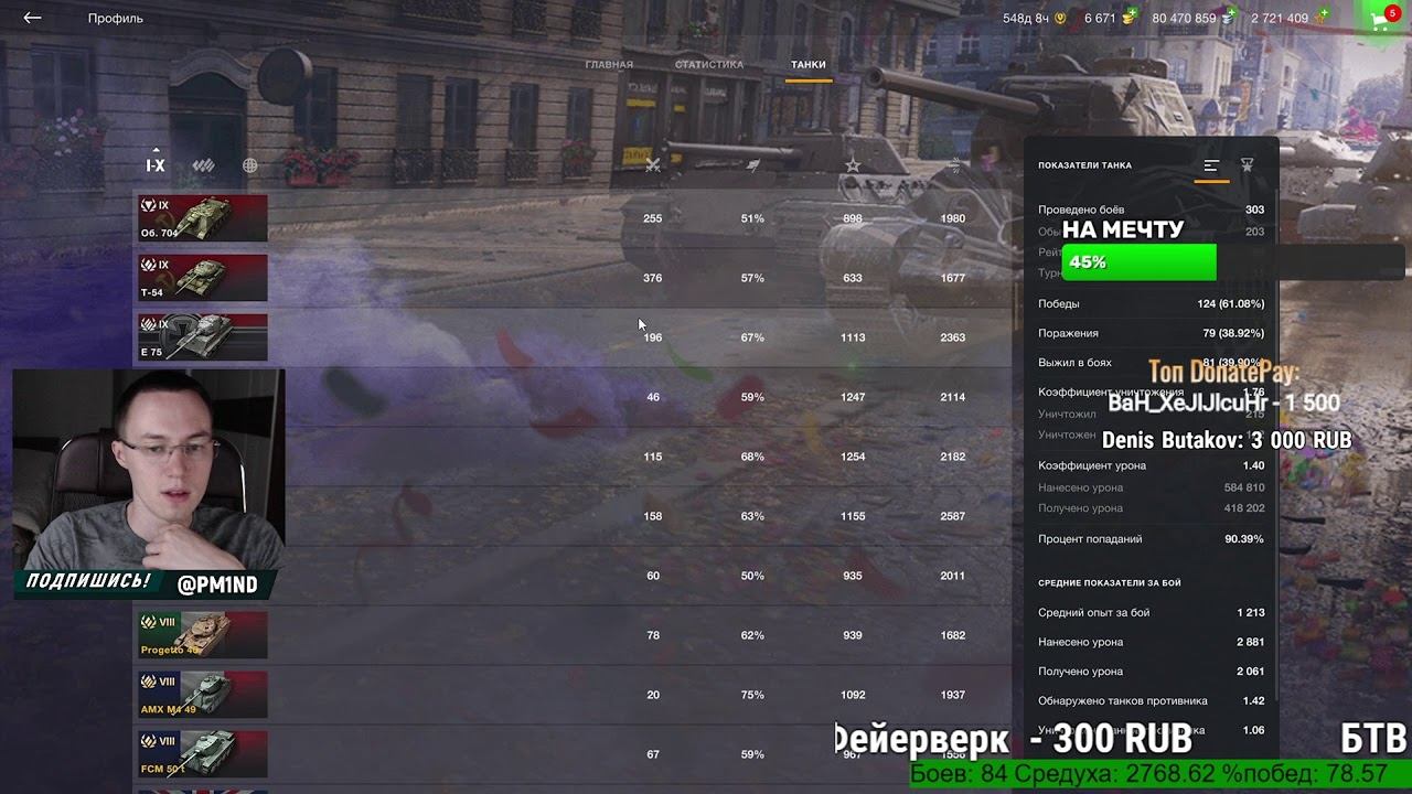 Поддержать танкиста - https://www.donationalerts.com/r/pm1nd https://donatepay.ru/don/pm1nd ✔️Через донат можно не только задать вопрос, но еще и: - прокатить определенный танк - 152р - детальный чек статы с рекомендациями в конце стрима - 150р. Сразу после боя - 300р. - поставить музыку на стрим - 200р - взвод на пару каток (обычно 3, если есть очередь) - 200р - интересные выполнимые (!!!) челленджи приветствуются Для тех кто действительно хочет помочь: - удалить мне танки на неделю - 100 000р - приехать в ваш город (РФ) и удалить танки ВАМ (под ключ со всех устройств) - 150 000р Вступить в семью интеллигентных танкистов или просто спонсорка (смайлы + выделение в чате + бонусы + ты помогаешь ютубу продвигать мой канал очень сильно) - https://www.youtube.com/channel/UCmKYhDzvo9DrX2em0AOSQJA/join ПИАР По вопросам, писать - PM1ND@hmd.one Все подряд не рекламирую! Только качественные каналы (!) На стриме или ролике можно разместить рекламу клана ПОЛЕЗНОСТИ ДЛЯ ТАНКИСТОВ Шпаргалка Танкиста - https://cutt.ly/nQwlwOz Топ Годных Премов - https://cutt.ly/mQwlqs9 Реплеи слать сюда - pm.blitzreplay@gmail.com Мой второй канал по Большим танкам, в будущем ТКМ - https://www.youtube.com/channel/UCkX7Sy9t3DSYa1V6u441HbQ Обучение по картам - https://www.youtube.com/channel/UCD7aNsZhb79WpRd4RNh5X0A ➖➖➖➖➖➖➖➖➖➖➖➖➖➖➖➖➖➖ КУДА СТОИТ ПОДПИСАТЬСЯ ИНСТАГРАМ (отвечаю в ЛС) - https://www.instagram.com/pm1nd Группа ВК (вступаем) - https://vk.com/pm1nd Телеграм PM1ND - https://t.me/pm1nd Страница ВК (добавляемся в друзья) - https://vk.com/id10179989 Discord - https://discord.gg/vDNnXh6 ➖➖➖➖➖➖➖➖➖➖➖➖➖➖➖➖➖➖ ПРОЧЕЕ Играл раньше с iPad Pro 11" 2018 64gb. По причинам здоровья перешел на ПК. Характеристики ПК есть в инстаграме. В игре бан чата, поэтому не могу ответить. :( Стримлю через OBS и X-Mirage. Виджет статы - https://widget.pythonanywhere.com/ ➖➖➖➖➖➖➖➖➖➖➖➖➖➖➖➖➖➖ Теги: #стрим #wotblitz #вотблиц #wot #WorldOfTanksBlitz #WorldOfTanks #PM1ND