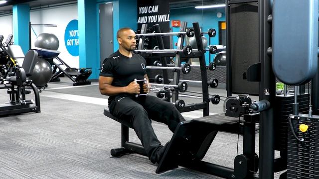 Тяга к животу в тренажере (гребная тяга сидя)