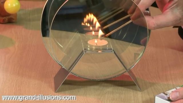 Иллюзия бесконечной свечи была создана дизайнером Ником Муром. Для этого несложного трюка заженную свечу нужно поместить между двух зеркал: спереди должно быть зеркало Гезелла, а сзади обычное.