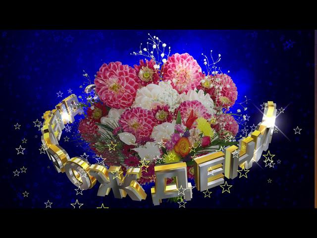 Шикарный футаж БУКЕТ ЦВЕТОВ С ДНЁМ РОЖДЕНИЯ на тёмно-синем фоне с эффектом контура звёзд