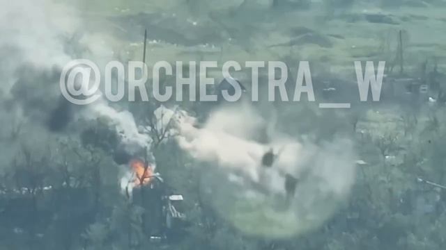 Артиллерия ЧВК "Вагнер" бьет по отступающим силам противника в частном секторе в юго-западной части Бахмута. ㅤ За несколько дней до освобождения города.