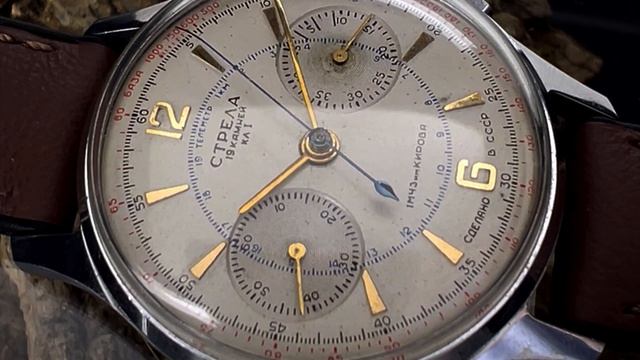 Часы Стрела, сделано в СССР. Год выпуска 1972 г. Механизм: 3017(механика ручной сборки).19 рубиновых камней. Номер внешнего оформления 1171310.Серийный номер 21712.Все детали оригинальные. Часы прошли профилактику у часового мастера. На точном ходу. Модель "Стрела " была прародителем хронографов и одной из первых моделей часов Первой Московской часовой фабрики. Изначально модель выпускалась в единичных экземплярах и носить ее имели право только офицеры ВВС , и некоторые высокопоставленные чиновники. Это обусловливалось тем,что была потребность в точном измерении времени и на небе и на земле. Данные часы вручали как награду пилотам и космонавтам после успешно проделанных операций. Это первые часы вышедшие в открытый космос, на руке А.Леонова. В начале 70-х данная модель изменила название на "Poljot" именно на латыни. И стала более доступной, но только рядам партийных работников. И только в конце 70-х стала доступной народу. С этого времени мы можем видеть названия "Полет", "Sekonda". И в 1979 году ее сняли с производства т.к. ранее была создана модель 3133. Механизм калибра 30мм, высота 5,7 мм на 19 рубиновых камнях, с боковой секундной стрелкой и секундомером. Анкерный стальной ход. Балансовый регулятор. Период колебания 0,4 сек. Продолжительность хода часов от одного полного завода пружины не менее 36 час. Корпус круглый, хромированный. Циферблат белого цвета, неполная оцифровки. Два регистра(однострелочный секундомер и 45-ти минутный счетчик) Телеметрическая шкала и шкала тахометра. Ремешок из натуральной кожи , 18 мм. https://chasi-sssr.ru/