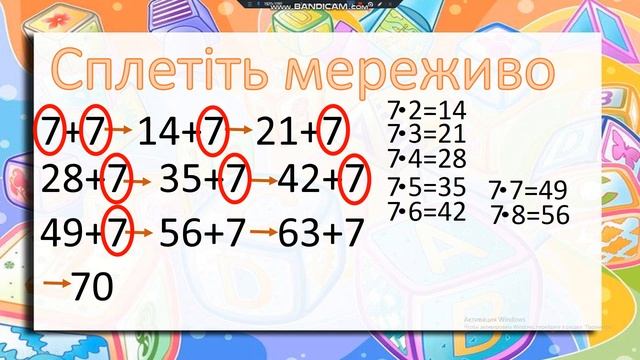 "Складання таблиці множення числа 7" відеоурок.