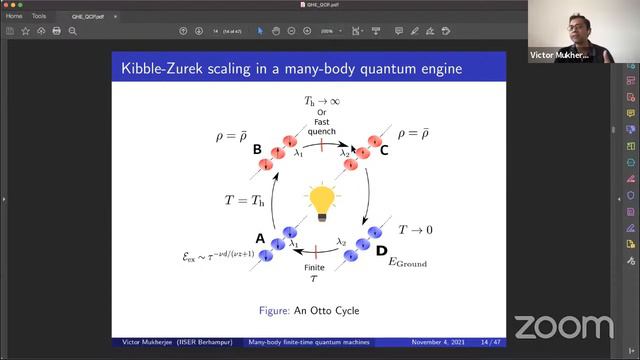Title: Many-body finite-time quantum machines Abstract: Studies on many-body quantum machines can be crucial for understanding the thermodynamics of many-body quantum systems. In this talk, I will discuss the existence of universal features in many-body finite-time quantum machines, which are governed by the Kibble-Zurek mechanism. I will also discuss the possibility of enhancing the performance of such machines through shortcuts to adiabaticity and bath engineering.