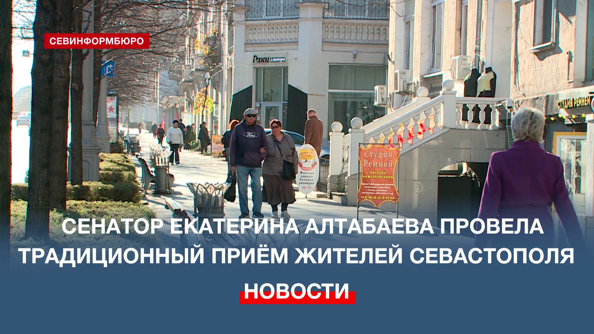 Сенатор Екатерина Алтабаева провела приём граждан. В этот раз, традиционно, в честь годовщины основания партии «Единая Россия», жители Севастополя могут обращаться в течение недели, по любым интересующим их вопросам. Подписывайтесь на наш Телеграм-канал: https://t.me/nts_novosti Смотрите новости Севастополя и Крыма на сайте НТС: http://nts-tv.com В нашей группе "ВКонтакте": https://vk.com/ntssevastopol На странице в "Одноклассниках": https://ok.ru/ntssevastopol
