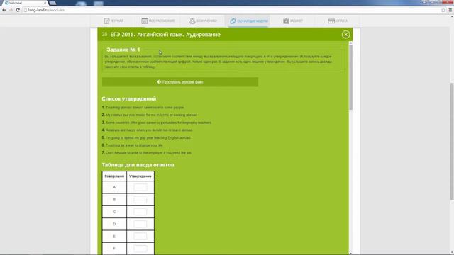 16. Lang-Land.com для Преподавателя - Модуль ЕГЭ 2016. Аудирование