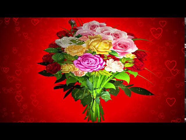 Шикарный футаж букета роз на красном фоне с эффектом контура сердечек