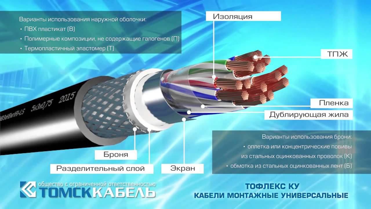 Компания "Томсккабель" представляет группу кабелей собственной торговой марки ТОФЛЕКС - кабели монтажные универсальные ТОФЛЕКС КУ.