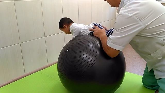 Упражнения на мяче ребенка с акушерским парезом.