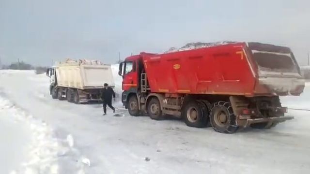 Неудачная попытка сдвинуть с места сани с самосвалом.