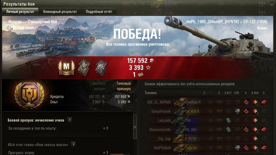 ФЬОРДЫ МАСТЕР на СУ-122 ( 1956 ) ОПЫТ: 1459 СУММАРНЫЙ УРОН: 8271