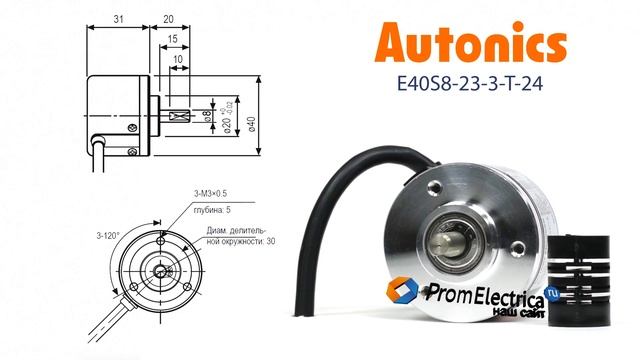 Инкрементальный энкодер с выступающим валом 8 мм 23 имп/об 12-24 VDC Артикул E40S8-23-3-T-24