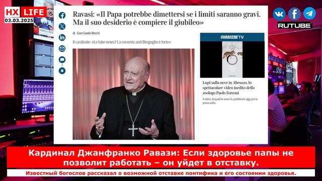 НХ-LIFE: Кардинал Джанфранко Равази: Если здоровье папы не позволит работать – он уйдет в отставку.