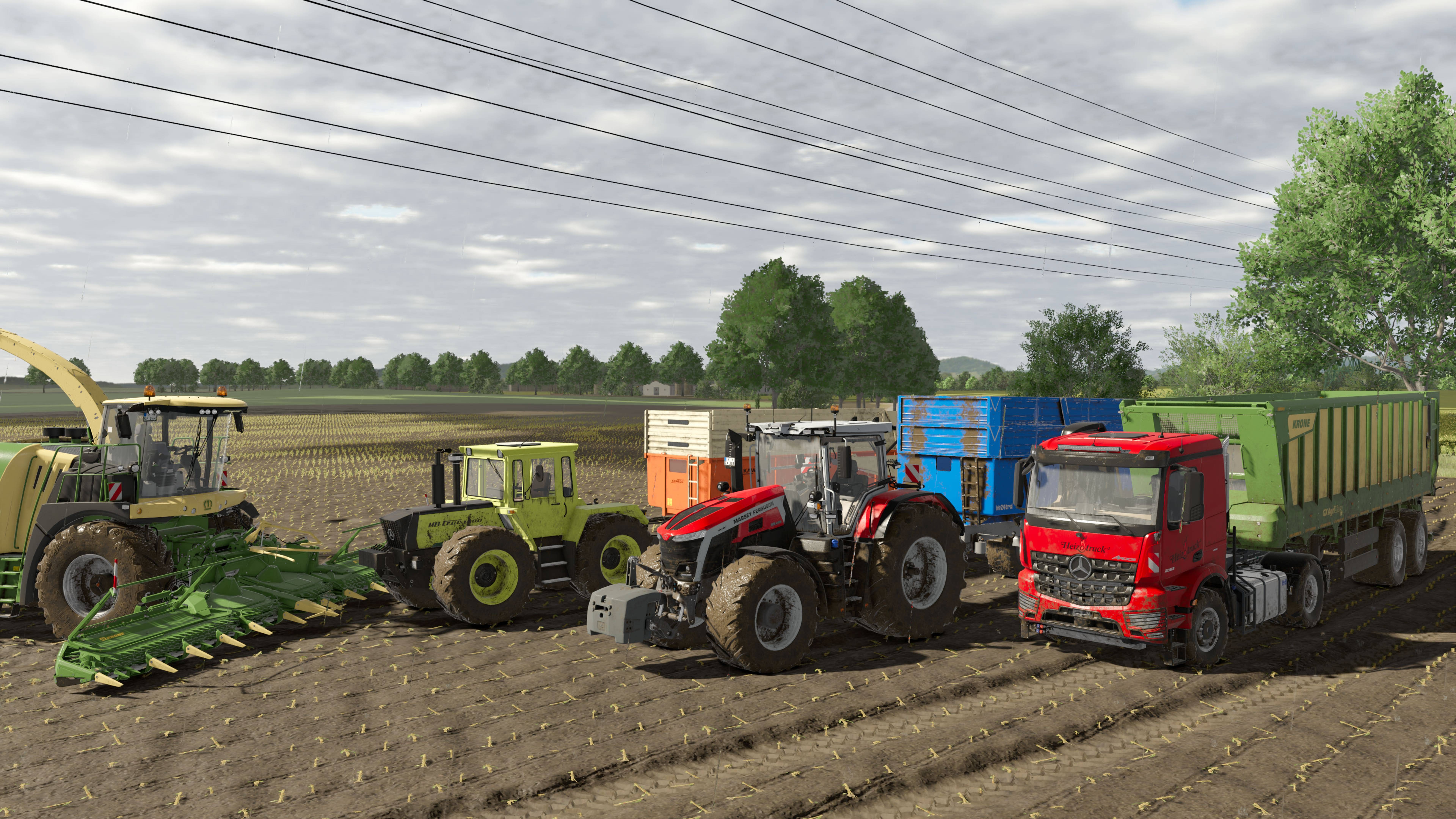 Уборка силоса в дождь Krone Big X1180, MF 9S, MB Trac 1500, Kirovets K-701, Heizotruck V2. FS25