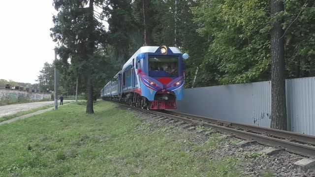 Московская детская железная дорога. Тепловоз ТУ2-129 с пассажирским поездом.