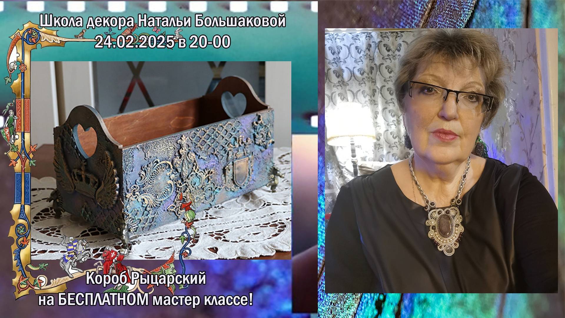 ссылка на мк - https://bolshakovanatasha.ru/knights_box Приглашаю Вас сегодня, 24 февраля в 20-00 по мск на бесплатный вебинар, который состоится на площадке моей Онлайн школы Романтический декупаж. -Основная тема-чередование фактур, многослойность в декоре. -Мы поработаем с пастой, с эффектом двухшагового кракелюра. -Также с пастой, с эффектом топинга. -Используем самозатвердевающие массы, гибкие отливки. -Получим огромное удовольствие от многослойного окрашивания, применив краски, пигменты. -И конечно цветные патины выполнят завершающий аккорд в нашем произведении. Декупаж от Натальи Большаковой