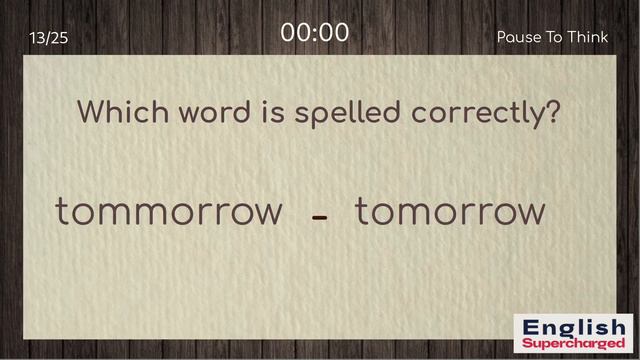 Which words do you think are most commonly misspelled in English? Here are 25 examples of commonly misspelled words. To test yourself, try these quizzes. -------------------------------------------- V I D E O S T O W A T C H N E X T : 👉 Quiz - HOMONYMS | Same spelling - different meaning https://youtu.be/-HGtY-tbTmU 👉 Question tags - isn't it? don't you? | English Grammar Quiz https://youtu.be/enUfX4mTMQM 👉 TEST YOUR ENGLISH | Past Simple or Past Continuous? - Grammar Quiz https://youtu.be/kqVs5WZ3ebI -------------------------------------------- Thank you so much for watching this video! 👍 Please SUBSCRIBE because more useful content is on the way! -------------------------------------------- #english #quiz #englishgrammar #misspelled #englishvocab #spelling #spellingquiz #englishgrammarquiz #englishtest #beginner #learnenglish #supercharged #englishsupercharged