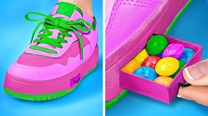 🍭 Как прятать сладости в обуви 😜 Лайфхаки с едой для школы | 123 GO!