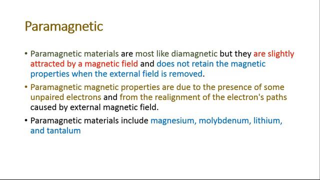 Difference between Diamagnetic, Paramagnetic and Ferromagnetic Materials