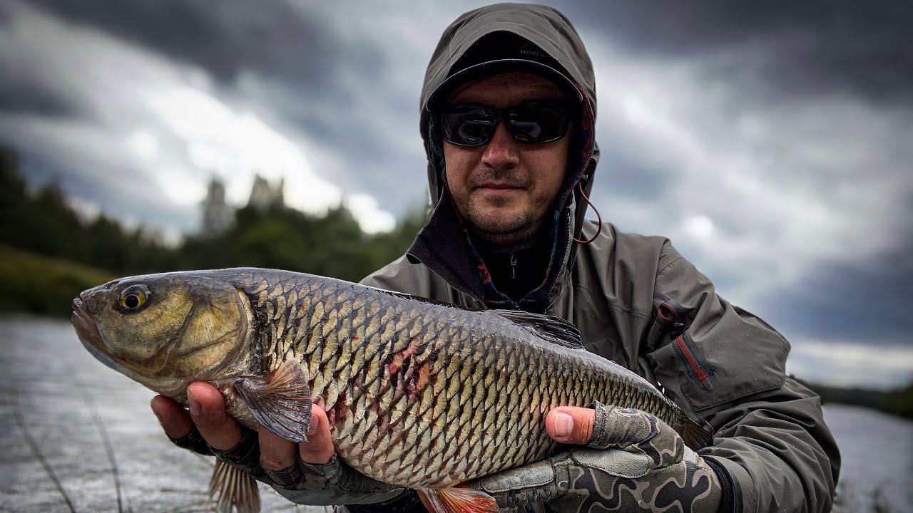 Трофейный голавль в дождь.
