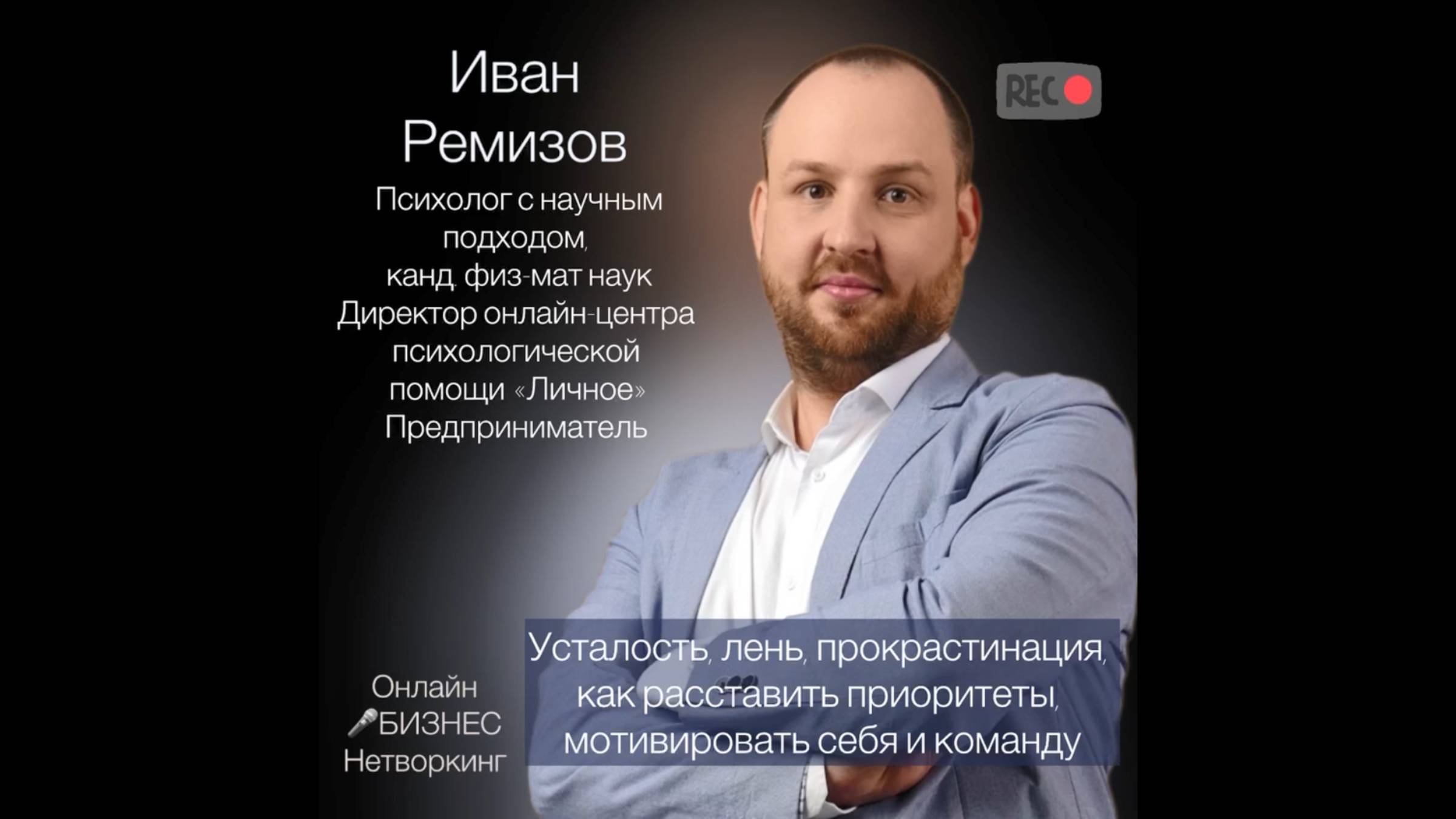Иван Ремизов - антикризисный психолог с научным подходом, член двух крупных ассоциаций психологов - ОППЛ и ЕКПП; Аккредитован в СРО («Союз психотерапевтов и психологов»), как специалист по полимодальной психотерапии; Руководитель онлайн-центра психологической помощи «Личное»; Кандидат физико-математических наук. Помогает: ✅ Узнать причины проблем и сложностей в своей жизни, снять напряжение и стресс; ✅ Пройти трудную жизненную ситуацию, убрать прокрастинацию, лень, вспышки гнева, раздражение, тревогу, туман в голове, неопределённость, обиды; ✅ преодолеть невидимый потолок в развитии, ограничивающие убеждения и отрицательные эмоции; ✅ Научиться себя выслушивать, понимать, любить, ценить и уважать, осознавать свои состояния и управлять ими, с помощью этого легче достигать свои жизненные цели. ✍️Контакты: Telegram (https://t.me/remizov_changes) - канал Во ВКонтакте (https://vk.com/remizov_changes) YouTube (https://youtube.com/@remizov_changes) - канал Яндекс.Дзен (https://dzen.ru/remizov_changes) На сайте b17 (https://b17.ru/remizov_changes/) @IvanRemizov По вопросам участия в качестве спикера в различных форматах (индивидуальный эфир, интервью, конференция) обращайтесь к организатору в Телеграмм https://t.me/Albina_biz https://t.me/biz_networking1 - наш канал телеграмм здесь https://vkvideo.ru/@online_business_networking ВК ВИДЕО https://www.youtube.com/@online_business_networking - YOUTUBE https://dzen.ru/online_business_networking - Дзен https://rutube.ru/channel/30460363/ - RuTube #ОнлайнНетворкинг #УчастиеВмарафоне #СпикерНетворкинг #УчастиеВнетворкинге #Психолог