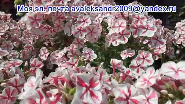 Флокс метельчатый «Twister» (Твистер). --------------------------------------------------------------------------------------- Твистер - высота растения 55см, размер цветка 3,5см. Цветки белые, с яркоми красно-розовыми узкими перьевидными полосками по центру лепестков. Соцветие крупное. Куст крепкий. Устойчивый к мучнистой росе. Зимостойкость высокая. Быстро разрастается и набирает силу. Пышно и продолжительно цветёт. Очень эффектно выглядит на тёмном фоне.