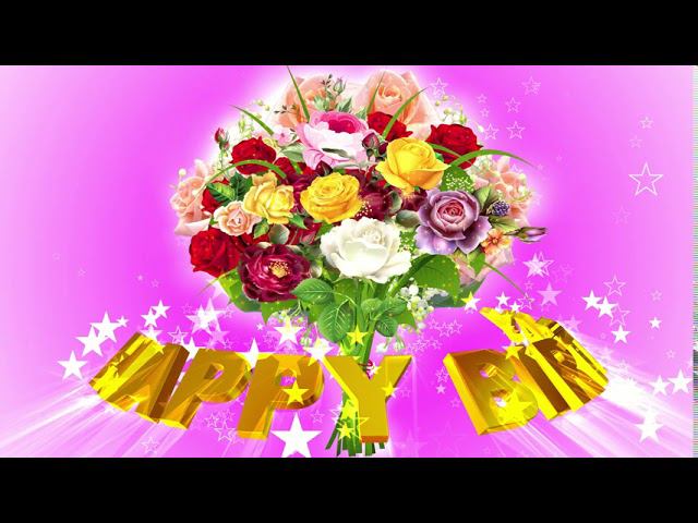 Шикарный футаж HAPPY BIRTHDAY. БУКЕТ ВОЛШЕБНЫХ РОЗ на розовом фоне с эффектом звёзд