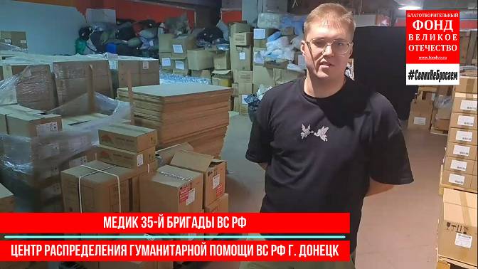 Фонд "Великое Отечество" продолжает активно работать над обеспечением госпиталей и воинских медиков, специализируясь на доставке медицинских препаратов в Донбасс. Поддержка наших защитников, предоставление им жизненно необходимых лекарств – это наша приоритетная задача. Каждый раз фонд организует отправку медицинских гуманитарных грузов, включая антибиотики, средства против ОРЗ и ОРВИ, противошоковые препараты и перевязочные материалы, подчеркивая важность этих ресурсов для поддержания здоровья воинов на передовой. В центре выдачи медикаментов «Армейская кладовая» встречаются военные со всех участков линии фронта, чтобы получить необходимые им медикаменты, показывая важность заботы о здоровье защитников. В каждом новом рейсе мы перевозим свыше десяти тонн лекарственных средств, а наши воины с огромным нетерпением ожидают приезда очередных партий медикаментов. Оказать посильную помощь можно одним из способов: 1. Перечислением с банковской карты с сайта Фонда. 2. Платеж из кабинета Сбербанк Онлайн. 3. Сделать платеж из интернет-банка с использованием QR-кода. 4. Осуществить платеж по реквизитам на сайте https://fondvo.ru/kak-pomoch/ [sc name="donate"][/sc] Канал Фонда в Телеграмме: https://t.me/fondvo Группа Фонда в Одноклассниках: https://ok.ru/fondvo Группа Фонда в ВКонтакте: https://vk.com/fond_vo