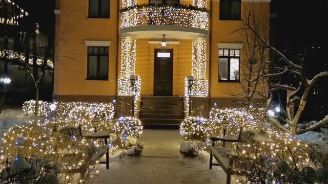 Праздничная подсветка частного дома: монтаж под ключ, управление через приложение