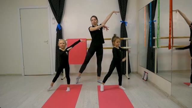 Поиграем в конце, чтобы остались позитивные эмоции. Игра называется “Море волнуется раз”, но вместо морских фигур у нас будут гимнастические. Встаем прямо, ноги на ширине плеч, руки выпрямили и увели в бок, раскачиваемся из стороны в сторону, переводя руки и говорим: Море волнуется раз, море волнуется два, море волнуется три, гимнастическая фигура замри. И девочка выполняет любую фигуру, которую мы изучили на данной тренировке. Повторить пару раз. В видео первое упражнение делают “берёзка” если вы его ещё не проходили, то не делайте, на следующих занятиях мы его потренируем).
