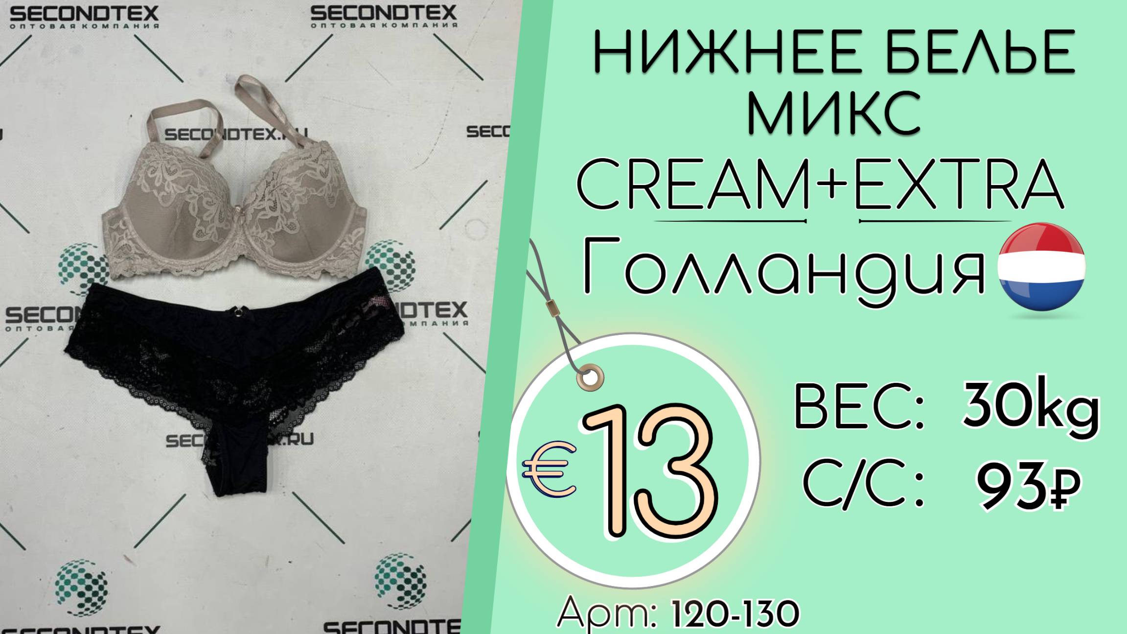 Страна: Голландия Вес мешка: 30 кг Цена за кг: Евро 13 / Рубли 1 209 Цена за мешок: 36 270 руб. Себестоимость одной вещи: 93 руб. Кол-во штук: 392 шт. ____ 💰 Курс на дату съемки (26.05.2025): €1 = 93 Руб. (при наличных и безналичных платежах) 💳 €1 = 93 Руб. (при безналичной форме оплаты на р/с) Связаться с нами: +7(916)779-79-79 (WhatsApp, Telegram) Наш сайт: https://secondtex.ru Instagram: https://instagram.com/secondtex.opt Мы ВКонтакте: https://vk.com/secondtex